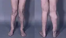 HME can lead to the shortening and bowing of bones; affected individuals often have a short stature. Depending on their location the exostoses can cause problems including: pain or numbness from nerve compression, vascular compromise, inequality of limb length, irritation of tendon and muscle, Madelung's deformity[20] as well as a limited range of motion at the joints upon which they encroach. A person with HME has an increased risk of developing a rare form of bone cancer called chondrosarcoma as an adult.[20] Problems may be had in later life and these could include weak bones and nerve damage.[21][22][23] The reported rate of transformation ranges from as low as 0.57%[16] to as high as 8.3% of people with HME.[24] Some authors have described an association between HME and the presence of popliteal pseudoaneurysms.[25]