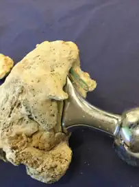 skeleton of 92-year old woman 20 years after hip replacement