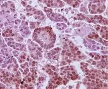 | Immunohistochemistry micrograph of androgen receptors on a HGSC tumour sample |