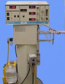 - ↑ D. P. Schuster; M. Klain; J. V. Snyder (October 1982). "Comparison of high-frequency jet ventilation to conventional ventilation during severe acute respiratory failure in humans". Critical Care Medicine. 10 (10): 625–630. doi:10.1097/00003246-198210000-00001. PMID 6749433.