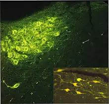 - ↑ A. Dahlström; K. Fuxe (1964). "Evidence for the existence of monoamine neurons in the central nervous system. I. Demonstration of monoamines in the cell bodies of brain stem neurons". Acta Physiologica Scandinavica. 62, suppl. 247: 1–55.