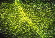 The next step led to the central nervous system. It was taken by Marthe Vogt, a refugee from Germany who at that time worked with John Henry Gaddum in the Institute of Pharmacology of the University of Edinburgh. "The presence of noradrenaline and adrenaline in the brain has been demonstrated by von Euler (1946) and Holtz (1950). These substances were supposed, undoubtedly correctly, to occur in the cerebral vasomotor nerves. The present work is concerned with the question whether these sympathomimetic amines, besides their role as transmitters at vasomotor endings, play a part in the function of the central nervous tissue itself. In this paper, these amines will be referred to as sympathin, since they were found invariably to occur together, with noradrenaline representing the major component, as is characteristic for the transmitter of the peripheral sympathetic system."[51] Vogt created a detailed map of noradrenaline in the dog brain. Its uneven distribution, not reflecting the distribution of vasomotor nerves, and its persistence after removal of the superior cervical ganglia made it "tempting to assign to the cerebral sympathin a transmitter role like that which we assign to the sympathin found in the sympathetic ganglia and their postganglionic fibers." Her assignment was confirmed, the finishing touch being the visualization of the noradrenaline as well as adrenaline and () dopamine pathways in the central nervous system by Annica Dahlström and Kjell Fuxe with the formaldehyde fluorescence method developed by Nils-Åke Hillarp (1916–1965) and Bengt Falck (born 1927) in Sweden and by immunochemistry techniques.[52]