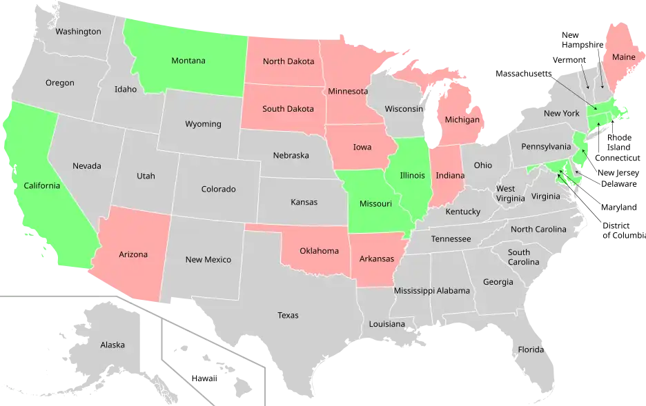 In 1998, 2001, 2004, 2005, 2007 and 2009, the United States Congress voted whether to ban all human cloning, both reproductive and therapeutic (Stem Cell Research Enhancement Act).[98] Divisions in the Senate, or an eventual veto from the sitting President (George W. Bush in 2005 and 2007), over therapeutic cloning prevented either competing proposal (a ban on both forms or on reproductive cloning only) from being passed into law. On 10 March 2010, a bill (HR 4808) was introduced with a section banning federal funding for human cloning.[99] Such a law, if passed, would not have prevented research from occurring in private institutions (such as universities) that have both private and federal funding. However, the 2010 law was not passed. Ten states, California, Connecticut, Illinois, Iowa, Maryland, Massachusetts, Missouri, Montana, New Jersey and Rhode Island, have "clone and kill" laws that prevent cloned embryo implantation for childbirth, but allow embryos to be destroyed.[100] The Patients First Act of 2017 (HR 2918, 115th Congress) aims to promote stem cell research, using cells that are "ethically obtained", that could contribute to a better understanding of diseases and therapies, as well as promote the "derivation of pluripotent stem cell lines without the creation of human embryos".[101] | |