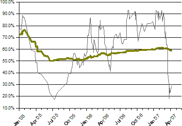 | 2007 | 88 | 59 | 67% |