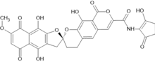 (2S)-4,9,10'-Trihydroxy-N-(2-hydroxy-5-oxo-1-cyclopenten-1-yl)-7-methoxy-5,8,9'-trioxo-4',5,8,9'-tetrahydro-3H,3'H-spiro[naphtho[2,3-b]furan-2,2'-pyrano[4,3-g]chromene]-7'-carboxamide | |