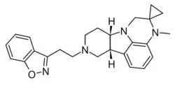 - 1 2 3 4 WO 2024145659, Li P, Davis R, Snyder G, Zhang L, Zheng G , Quai Y, Zhang Q, "Heterocycle fused gamma-carbolines acting on the serotonine 5-ht2a receptor", published 4 July 2024, assigned to Intra-Cellular Therapies, Inc. Quote: Examples 1 to 180 are, or will be, synthesized and characterized: [...] Ex.: 40. X: -N(CH3)-. Y: Cyp. m: 1. n: 2. Z: bond. A: benzo[d]isoxazol-3-yl [...] Examples 24, 25, and 40, also show zero G-q mediated agonist activity, but while the compound of Example 24 is a beta-arrestin antagonist, the compounds of Examples 25 and 40 are beta-arrestin partial agonists. [...] The following receptor affinity results are obtained (with the Compound of Formula A for comparison): [...] Ex.: 40. 5-HT2A (%): 87%. 5-HT2A Ki: 10. [...] Selected compounds are also tested in receptor binding assays for the 5-HT2B, and/or 5-HT2C receptors. Some results are shown in the following table: Ex.: 40. 5-HT2A (%): 87%. 5-HT2A Ki: 10. 5-HT2B (%): 80%. 5-HT2B Ki: 4.8. 5-HT2C (%): 81%. 5-HT2C Ki: 21.