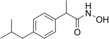 Ibuproxam is a nonsteroidal anti-inflammatory drug (NSAID).It is the hydroxamic acid of ibuprofen to which it is hydrolyzed in the blood. It was found, that ibuproxam is considerably less damaging to the gastrointestinal tract than is ibuprofen. The analgesic and the antipyretic activities are consistent.[1]