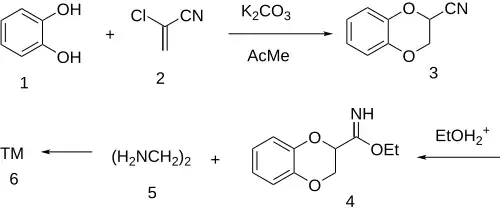 - ↑ Chapleo CB, Myers PL (January 1981). "2-[2-(1, 4-benzodioxanyl)]-2-imidazoline hydrochloride". Tetrahedron Letters. 22 (48): 4839–4842. doi:10.1016/S0040-4039(01)92358-5.
