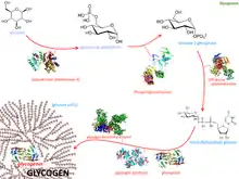 | Glycogenesis step: Glucogen chain lengthening – Glycogen synthase
