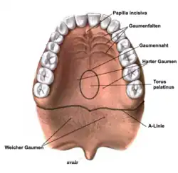 ![]() The papilla incisiva in the anterior hard palate | |