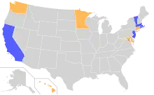 In 2018, as a response to the cancellation of the individual mandate penalty on the federal level, a number of states and the District of Columbia considered legislation to create state or local requirements. Massachusetts had never stopped its penalty for not carrying coverage, and maintained it post-ACA, in addition to the federal penalty associated with the ACA. After the 2018 dropping of the federal penalty, the state penalty continues to exist in Massachusetts.[18] New Jersey and the District of Columbia passed legislation to penalize individuals for not having health insurance starting from 2019. California, Rhode Island, and Vermont also passed similar legislation that would apply to years 2020 and onward. Other states that considered similar measures include Connecticut, Hawaii, Maryland, Minnesota, and Washington.[19][20]