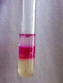 The Indole test is one of the four tests of the IMViC series, which tests for evidence of an enteric bacterium. The other three tests include: the methyl red test [M], the Voges–Proskauer test [V] and the citrate test [C].[1]