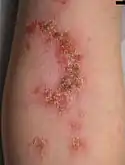 This superficial intra-dermal infection spreads by contact. A red, tender 'spot' quickly develops blisters or