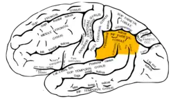 ![]() Lateral surface of left cerebral hemisphere, viewed from the side. (Inferior parietal lobule is shown in orange.) | |