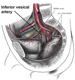 The inferior vesical artery is a branch of the anterior division of the internal iliac artery. It frequently has a common origin with the middle rectal artery.[3]