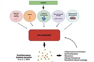 - ↑ Zuo; Prather; Stetskiv; Garrison; Meade; Peace; Zhou (10 September 2019). "Inflammaging and Oxidative Stress in Human Diseases: From Molecular Mechanisms to Novel Treatments". International Journal of Molecular Sciences. 20 (18): 4472. doi:10.3390/ijms20184472. ISSN 1422-0067. PMC 6769561. PMID 31510091.