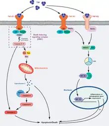 - ↑ Idriss, H. T.; Naismith, J. H. (1 August 2000). "TNF alpha and the TNF receptor superfamily: structure-function relationship(s)". Microscopy Research and Technique. 50 (3): 184–195. doi:10.1002/1097-0029(20000801)50:3<184::AID-JEMT2>3.0.CO;2-H. ISSN 1059-910X. PMID 10891884. S2CID 3003943.