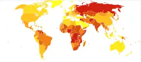 - ↑ GBD 2013 Mortality and Causes of Death Collaborators (17 December 2014). "Global, regional, and national age-sex specific all-cause and cause-specific mortality for 240 causes of death, 1990-2013: a systematic analysis for the Global Burden of Disease Study 2013". Lancet. 385 (9963): 117–71. doi:10.1016/S0140-6736(14)61682-2. PMC 4340604. PMID 25530442.