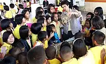 The first attempts at opisthorchiasis control in Thailand began in the 1950s and included education on liver fluke infection and safe cooking, but these efforts had limited success since the consumption of raw fish dishes is an ingrained part of the rice-fish culture of the indigenous people.[6] With the introduction of praziquantel in the 1980s, treatment became a part of the program. The prevalence of infection was reduced, but after funding reductions during the economic crises in the 1990s, prevalence rates rose again to as high as 85 percent in some areas of the northeast by 2009.[1] In 2007, researchers at Khon Kaen University, led by Banchob Sripa, decided to take a more multidisciplinary approach, incorporating EcoHealth principles, which involve the collaboration of human and animal health specialists toward improving the health of people, animals and the environment as well as achieving greater understanding of how the ecosystem affects human and animal health.[7] The "Lawa model" as it became known, involves community participation as a key element. Village health volunteers, staff of local sub-district hospitals, teachers, and others maintain a campaign of continuous education, teaching in the community and the schools about liver fluke disease and discouraging the consumption of raw or undercooked fish. The campaigns often involve "edutainment" activities (songwriting, dancing, and music) to attract public attention.