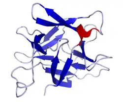 Interleukin-18 (IL-18), also known as interferon-gamma inducing factor is a protein which in humans is encoded by the IL18 gene.[5][6] The protein encoded by this gene is a proinflammatory cytokine. Many cell types, both hematopoietic cells and non-hematopoietic cells, have the potential to produce IL-18. It was first described in 1989 as a factor that induced interferon-γ (IFN-γ) production in mouse spleen cells.[7] Originally, IL-18 production was recognized in Kupffer cells, and liver-resident macrophages. However, IL-18 is constitutively expressed in non-hematopoietic cells, such as intestinal epithelial cells, keratinocytes, and endothelial cells.[8] IL-18 can modulate both innate and adaptive immunity and its dysregulation can cause autoimmune or inflammatory diseases.[9][10]