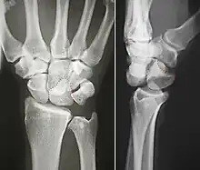 - 1 2 3 4 5 Eathorne, SW (Mar 2005). "The wrist: clinical anatomy and physical examination--an update". Primary Care. 32 (1): 17–33. doi:10.1016/j.pop.2004.11.009. PMID 15831311.