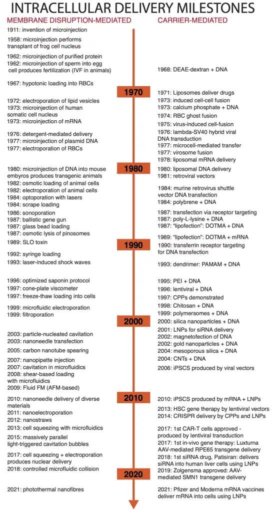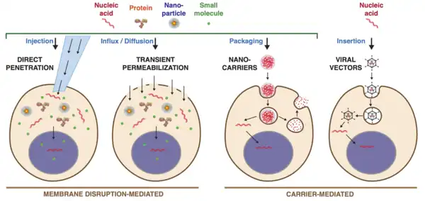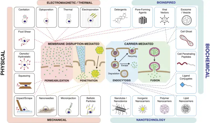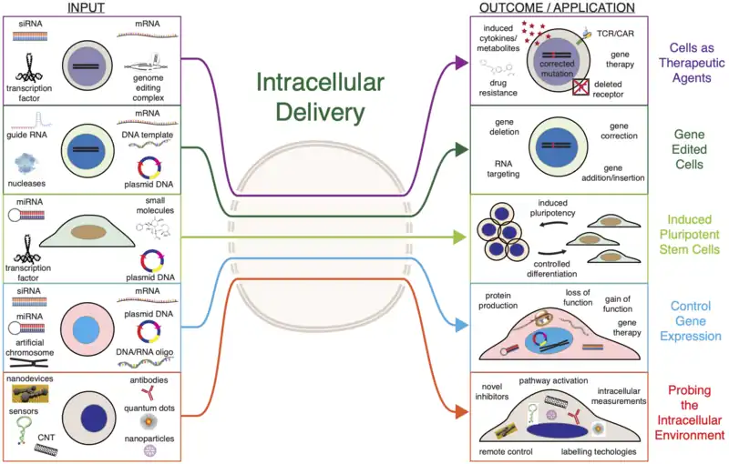 - 1 2 3 4 Stewart, Martin (2016). "In vitro and ex vivo strategies for intracellular delivery". Nature. 538 (7624): 183–192. Bibcode:2016Natur.538..183S. doi:10.1038/nature19764. hdl:1721.1/110923. PMID 27734871. S2CID 2628005.
