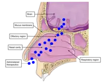 - ↑ Erdő, Franciska; Bors, Luca Anna; Farkas, Dániel; Bajza, Ágnes; Gizurarson, Sveinbjörn (October 2018). "Evaluation of intranasal delivery route of drug administration for brain targeting". Brain Research Bulletin. 143: 155–170. doi:10.1016/j.brainresbull.2018.10.009. hdl:20.500.11815/1402. PMID 30449731. S2CID 53027303.