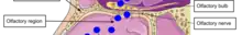 - ↑ Crowe, Tyler P.; Greenlee, M. Heather West; Kanthasamy, Anumantha G.; Hsu, Walter H. (2018-02-15). "Mechanism of intranasal drug delivery directly to the brain". Life Sciences. 195: 44–52. doi:10.1016/j.lfs.2017.12.025. ISSN 0024-3205. PMID 29277310.