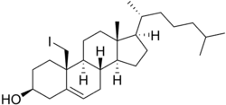 Iodocholesterol, or 19-iodocholesterol, also as iodocholesterol (131I) (INN) and NP-59, is a derivative of cholesterol with an iodine atom in the C19 position and a radiopharmaceutical.[1][2] When the iodine atom is a radioactive isotope (iodine-125 or iodine-131), it is used as an adrenal cortex radiotracer in the diagnosis of patients suspected of having Cushing's syndrome, hyperaldosteronism,[3] pheochromocytoma, and adrenal remnants following total adrenalectomy.[1][2]