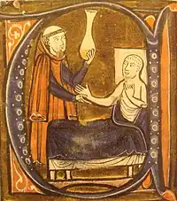 13th century depiction of Rhazes browsing urine samples of patients, in Gerard of Cremona