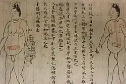 The Ishinpō preserved more than 200 important medical documents that were all Chinese in origin and no Japanese sources.[1] The medical knowledge in the tome covered clinical treatments that drew from the ancient Chinese traditional medicine and influenced by Indian medical theories found in Buddhist scriptures as well as Taoist references (e.g. Taoist drugs).[1] For instance, there was the so-called Scripture on Pregnancy, which outlined the physical developments and fetal movements.[4] Scholars cite its similarity with a prescription from the old Chinese medical text called Taichan shu, which contained doctrines about the development of embryo and fetus as well as proper hygiene for pregnant women.[5]