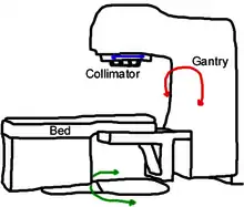 - the collimator twists in the head of the gantry