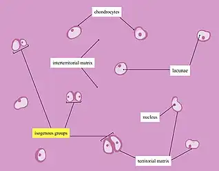 Isogenous groups differentiate into individual chondrocytes where they continue to produce and deposit extracellular matrix (ECM), lengthening the cartilage and increasing its diameter.[3][5] This is termed interstitial growth and is one of only two ways cartilage can grow.[4]