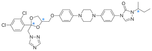 - ↑ Kunze KL, Nelson WL, Kharasch ED, Thummel KE, Isoherranen N (April 2006). "Stereochemical aspects of itraconazole metabolism in vitro and in vivo". Drug Metabolism and Disposition. 34 (4): 583–590. doi:10.1124/dmd.105.008508. PMID 16415110. S2CID 189994.