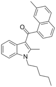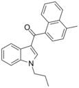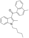 - 1 2 3 4 5 6 7 8 9 10 11 12 13 14 15 16 17 18 19 20 21 22 23 24 Aung MM, Griffin G, Huffman JW, Wu M, Keel C, Yang B, Showalter VM, Abood ME, Martin BR (August 2000). "Influence of the N-1 alkyl chain length of cannabimimetic indoles upon CB(1) and CB(2) receptor binding". Drug and Alcohol Dependence. 60 (2): 133–40. doi:10.1016/S0376-8716(99)00152-0. PMID 10940540.