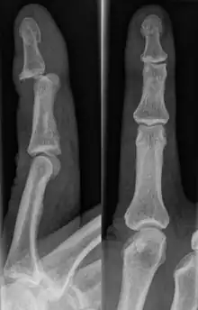 - 1 2 3 Childress, Marc A.; Olivas, Jairo; Crutchfield, Anna (2022-06-01). "Common Finger Fractures and Dislocations". American Family Physician. 105 (6): 631–639. ISSN 1532-0650. PMID 35704814.
