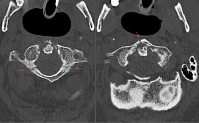 - ↑ Gehweiler JA, Daffner RH, Roberts L (1983). "Malformations of the atlas vertebra simulating the Jefferson fracture". AJR Am J Roentgenol. 140 (6): 1083–6. doi:10.2214/ajr.140.6.1083. PMID 6602470.