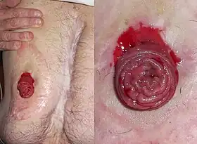 {{cite journal}}: CS1 maint: numeric names: authors list (link) - ↑ Tapia J, Murguia R, Garcia G, de los Monteros PE, Oñate E (1999). "Jejunostomy: techniques, indications, and complications". World Journal of Surgery. 23 (6): 596–602. doi:10.1007/pl00012353. PMID 10227930. S2CID 21517953.