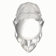 ![]() Human skull seen from above. Jugular process shown in red. | |