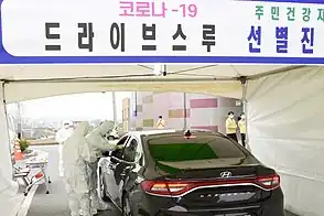 - ↑ 김, 선형 (5 March 2020). "코로나19 검사 5분에 끝…진화하는 드라이브 스루 선별진료소". Yonhap News Agency (in Korean). Retrieved 1 November 2020.