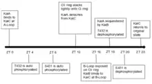 - 1 2 3 Murayama Y, Oyama T, Kondo T (March 2008). "Regulation of circadian clock gene expression by phosphorylation states of KaiC in cyanobacteria". Journal of Bacteriology. 190 (5): 1691–8. doi:10.1128/jb.01693-07. PMC 2258689. PMID 18165308.