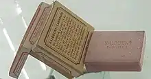 The original product was manufactured by F. A. Sarg's Sohn & Co. from Vienna, and sold in Austria-Hungary starting with 1887. It later became widely distributed, in 34 other countries, and obtained a near-monopoly status that caused the word "kalodont" to become synonymous with the word for "tooth paste" in South Slavic languages.[2] It was also advertised and sold in Russia in 1927.[3] Production, at the time based in Yugoslavia, ceased in 1981,[2] but the product returned to the market in 2012, as Saponia attempted to revitalize its old brands.[4]