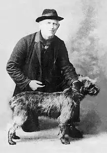 The Kerry Blue Terrier (also known as the Irish Blue Terrier) (Irish: An Brocaire Gorm) is a breed of dog.[1] Originally bred to control vermin including rats, rabbits, badgers, ferrets, foxes, otters, hares, deer, and even wolves, over time the Kerry became a general working dog used for a variety of jobs including herding cattle and sheep. Despite a Kerry Blue winning Crufts (the most prestigious UK dog show) in 2000,[2] it remains an "unfashionable" breed,[3] and is distinctly uncommon; however, it is not as threatened as some of the other terrier breeds such as the Skye Terrier, Sealyham Terrier, and Dandie Dinmont Terrier.
