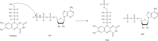 Riboflavin kinase plays an important role in cells, as FMN is an important cofactor. FMN also is a precursor to flavin adenine dinucleotide(FAD), a redox cofactor used by many enzymes, including many in metabolism. In fact, there are some enzymes that are capable of carrying out both the phosphorylation of riboflavin to FMN, as well as the FMN to FAD reaction.[32] Riboflavin kinase may help prevent stroke, and could possibly be used as a treatment in the future.[33] It is also implicated in infection, when studied in mice.[34]