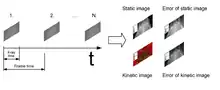 The kinetic imaging modality records a series of images generated by penetrating radiation (e.g. X-ray photons) over a period of time. Moreover, from these series of (in many cases underexposed) images, the number of detected photons can be determined for each pixel. Observed photon counts fluctuate due to different noise sources and motion within the sample.[1][2] In its simplest form, the mean, variance, error of the mean, and error of the variance of the signal intensities are calculated from the image series for each pixel and a single image then is reconstructed from each of these statistical parameters. More elaborate calculations can correct for various types of noise of known spectra, such as detector noise or photon shot noise.[1][2]
