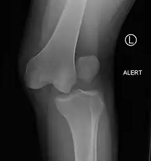 | Plain lateral X-ray of the left knee showing a posterior knee dislocation[1] | |
