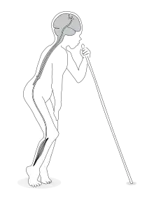 | A boy affected by konzo displaying the typical gait. The upper motor neuron is the suspected neurodamage site. | |