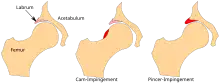 - ↑ Ilizaliturri, Victor M. (March 2009). "Complications of arthroscopic femoroacetabular impingement treatment: a review". Clinical Orthopaedics and Related Research. 467 (3): 760–768. doi:10.1007/s11999-008-0618-4. ISSN 1528-1132. PMC 2635434. PMID 19018604.