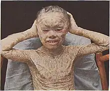 - 1 2 3 4 Van Gysel D, Lijnen RL, Moekti SS, de Laat PC, Oranje AP (September 2002). "Collodion baby: a follow-up study of 17 cases". J Eur Acad Dermatol Venereol. 16 (5): 472–5. doi:10.1046/j.1468-3083.2002.00477.x. PMID 12428840. S2CID 12110995.