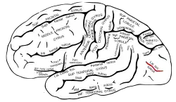 ![]() Lateral surface of left cerebral hemisphere, viewed from the side. (Lat. occ. sulcus labeled at center right.) | |